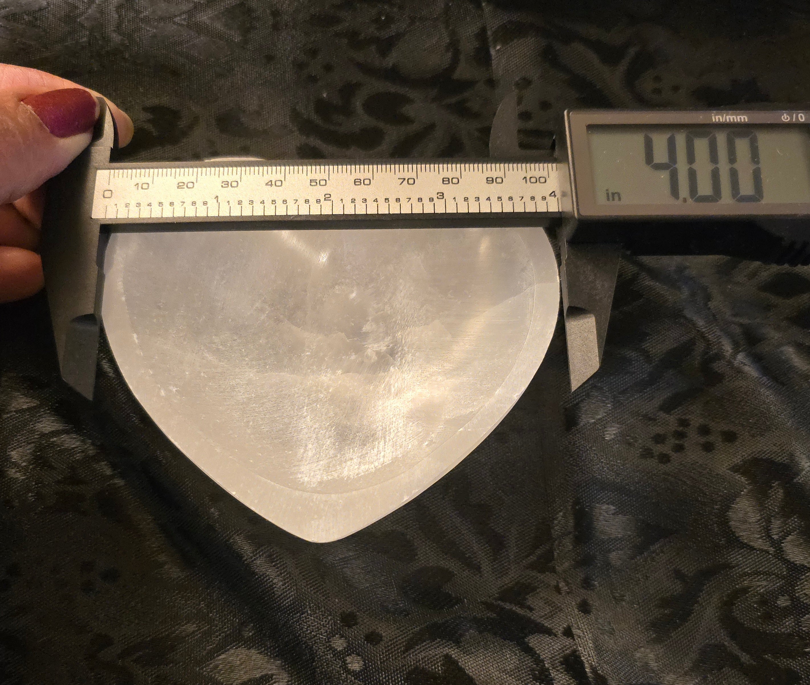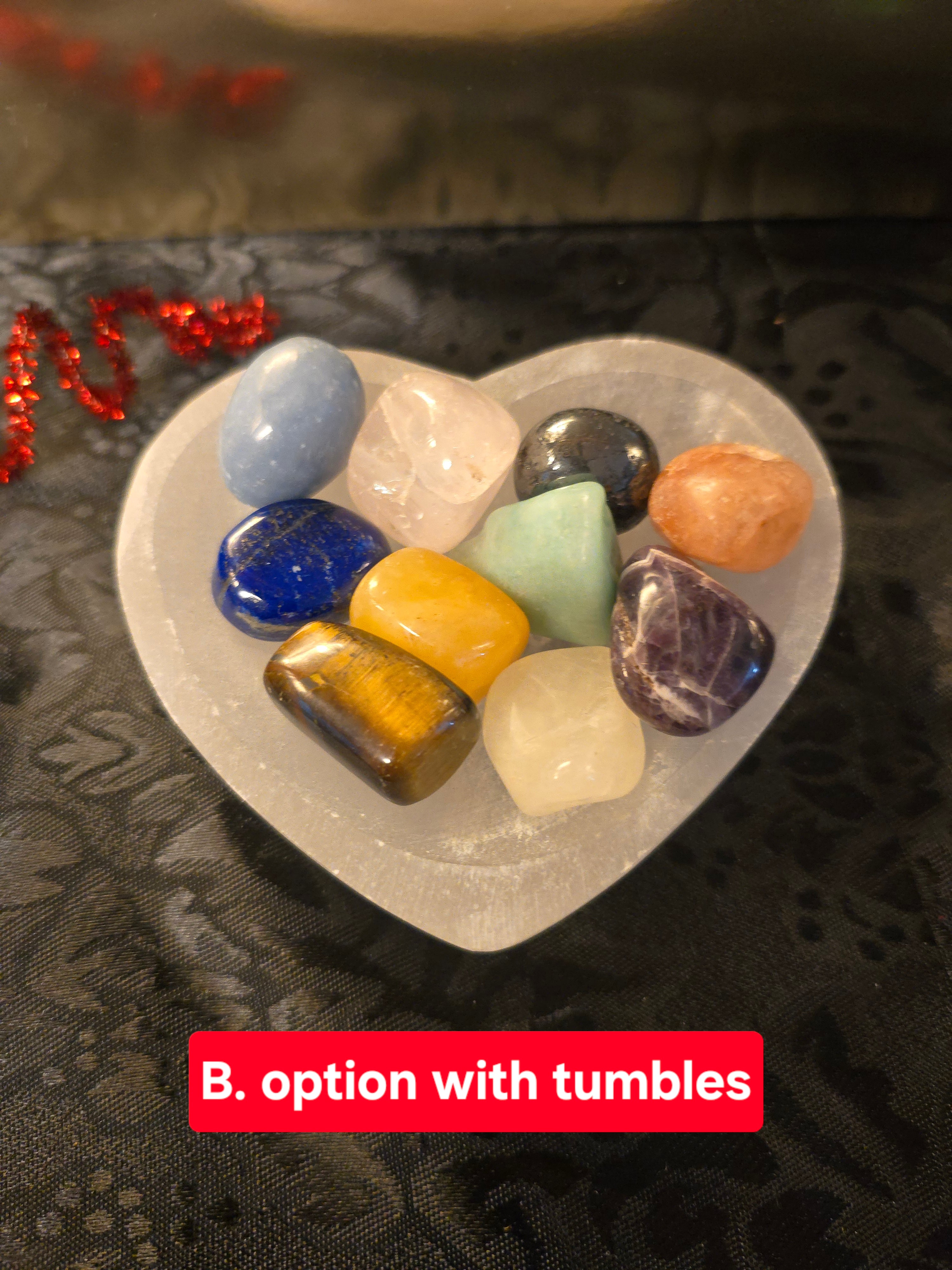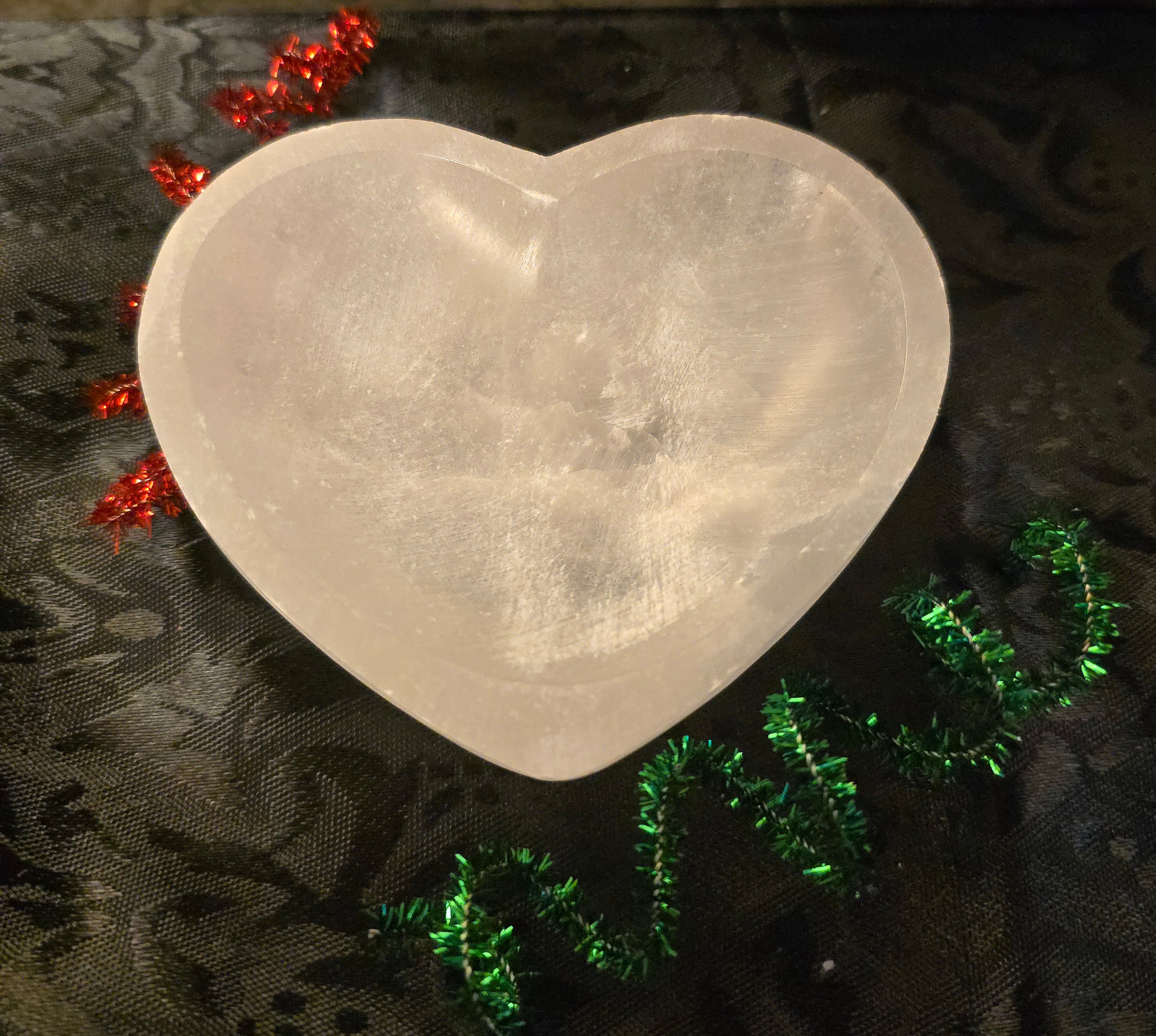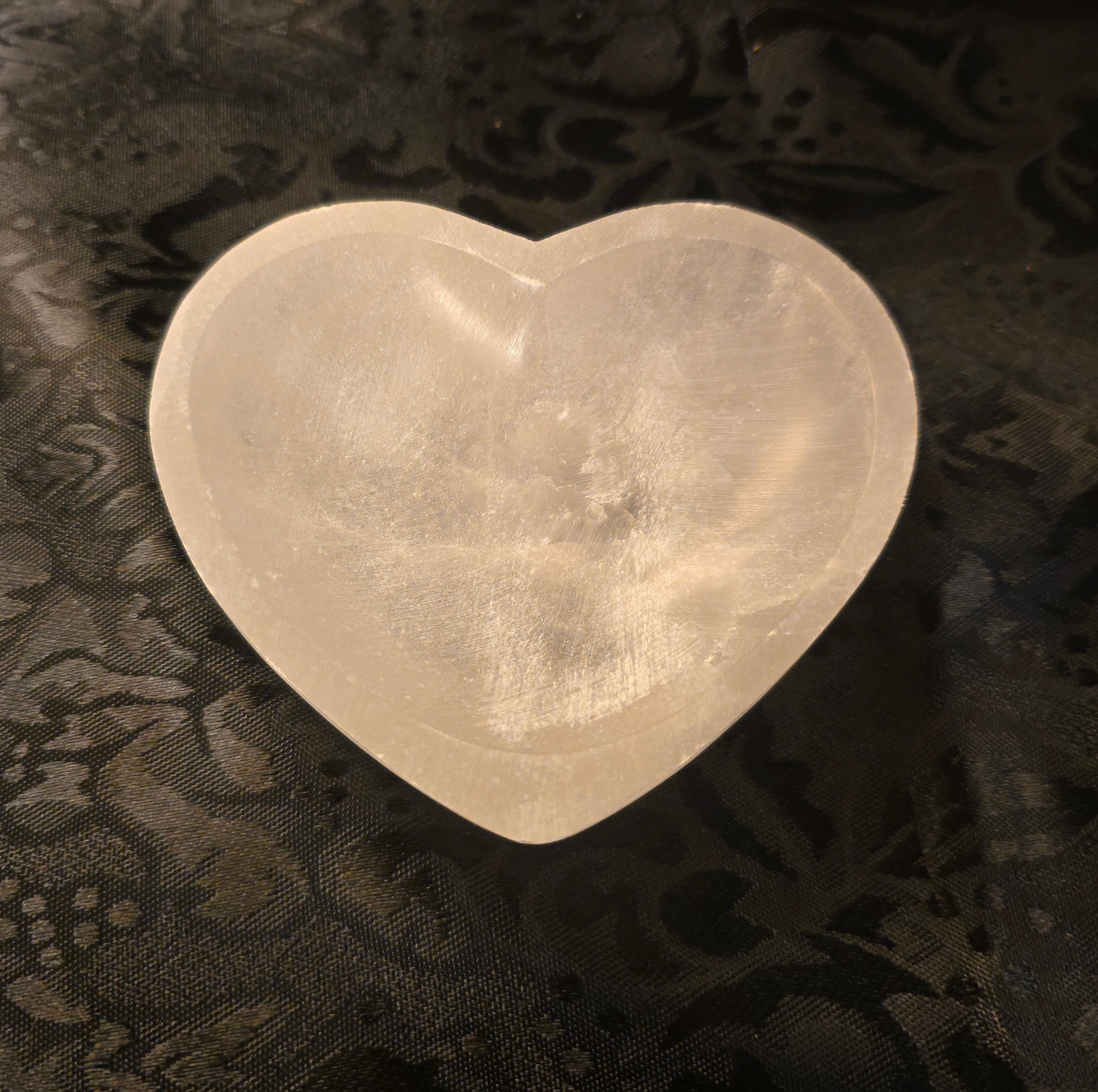 Small Selenite Heart Dish Sale! from $14.00 USD /per Dish A. Dish only B. Dish with 8-10 variety tumbles Authenticity Genuine Produc variants A. Dish only / Genuine B. Dish with 8-10 variety tumbles / Genuine Qty. Add to Cart This item is a recurring or deferred purchase. By continuing, I agree to the cancellation policy and authorize you to charge my payment method at the prices, frequency and dates listed on this page until my order is fulfilled or I cancel, if permitted. Couldn't load pickup availability Refresh 4 inch selenite dish, heart shaped Cleanse your crystals or let it sit pretty *tumbled stones sold separately
